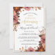 Convite de aniversário de casamento requintado com detalhes dourados e delicados elementos florais em tons de rosa e borgonha pintados à mão em aquarela. Possibilidade de alterar o número do aniversário de acordo com as suas necessidades. Verso do cartão impresso em folha dourada e detalhe floral cativante no centro. Uso de caligrafia elegante manuscrita e tipografia bloco. Produtos coordenados disponíveis. Parte da nossa coleção de casamento e eventos "Heaven in Rose".