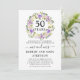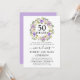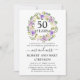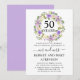 Uma grinalda bonita e elegante de flores roxas e brancas marfim cerca 50 anos para coroar este convite de aniversário de 50 anos de casamento. O texto é uma combinação de caligrafia moderna e texto clássico em pé. A cor cinza complementa as flores de cerejeira.