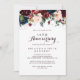 Este convite de aniversário de 50 anos de casamento ilustrado em aquarela é perfeito para uma celebração romântica de aniversário de casamento. O design apresenta ilustrações artísticas pintadas à mão em aquarela nas cores azul-marinho, burgundy, vermelho, rosas rosadas e peônias com folhas verdes elegantes, inspirando a beleza colorida e idílica do outono.