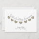 Convite personalizado de aniversário de 50 anos de casamento dourado branco moderno com bandeirolas de coração dourado.