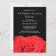Um convite de celebração de aniversário de 50 anos de casamento com uma rosa vermelha em preto.