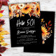 Convite de aniversário de 50 anos festa floral preto e branco para uma festa de aniversário divertida