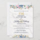 Convites Aniversário de 50 anos Floral Elegante Dourado Azu