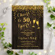 Convite de aniversário de casamento rústico dourado de 50 anos. Parabéns por 50 Anos! Design elegante com padrão de madeira marrom escuro e dourado brilhante. Apresenta taças de champanhe, fonte manuscrita e confetes. Perfeito para uma celebração sofisticada de 50 anos de casamento. Convites Zazzle impressos ou modelo digital para download instantâneo. Pode ser personalizado para mostrar qualquer ano! Personalize com seus próprios detalhes.