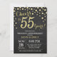 Convite de Aniversário de 55 anos de Casamento Quadro Negro e Dourado. Cinquenta e cinco Anos de Casamento. Fundo de Diamante Brilhante Preto e Dourado. Confetes Dourados. Aniversário de Adulto. Festa de Aniversário Masculina ou Feminina. Para personalização adicional, clique no botão "Personalize" e use nossa ferramenta de design para modificar este modelo.