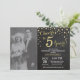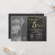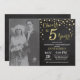 5º aniversário de casamento com foto personalizada. Convite quadro-negro Preto e Dourado. Quinto aniversário de casamento. Fundo de diamante brilhante quadro-negro Preto e Dourado. Confetes dourados. Aniversário adulto. Festa de aniversário masculina ou feminina. Para personalização adicional, clique no botão "Personalizar" e use nossa ferramenta de design para modificar este modelo.