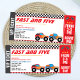 Um convite de 5 de aniversário para a passagem de caminhonete monstro desenhado como um bilhete de admissão VIP com caminhões monstros coloridos e bandeira de controlo.