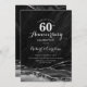 Convite de aniversário de 60 anos em mármore prateado e preto. Design formal elegante com fundo de mármore ágata, prata brilhante falsa e fonte de tipografia script. Cartão de convite moderno perfeito para uma celebração de aniversário de casamento sofisticada. Convites Zazzle impressos ou modelo digital para impressão instantânea.