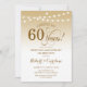 Design dourado e branco com luzes de fada e fonte elegante. Saúde por 60 anos! Pode ser personalizado para qualquer ano de casamento! Convites Zazzle impressos ou modelo digital para download instantâneo. Perfeito para uma celebração estilosa de 60 anos de casamento.