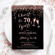 Convite de aniversário de 70. Saúde Para 70 Anos! Design elegante em ouro preto e rosa. Apresenta óculos de champanhe, fonte de script e confetti. Perfeito para na moda 70 festas de aniversário. Personalize com seus próprios detalhes. Pode ser personalizado para mostrar qualquer idade.