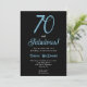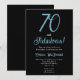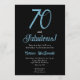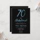 Convite de aniversário de 70 anos minimalista preto e azul frio Ártico em um fundo preto moderno e elegante que você pode personalizar e enviar para a celebração da sua festa de aniversário de setenta anos. As palavras "Setenta e Fabuloso" são definidas usando tipografia de fonte em tendência. As cores do texto branco podem ser alteradas usando o menu de edição.