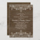 Convites de Aniversário de 70 anos de Casamento Rustic Wood Country Lace e Pérolas. Personalizados para os detalhes da sua celebração. Característica de renda bonita, pérolas e tipografia em um fundo de madeira escura rústica. Convites de aniversário de casamento elegantes para aniversários country criativos. Este convite de aniversário de casamento é projetado por superdazzle.com