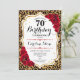 Convite de aniversário de 70. Design vermelho elegante com ouro brilhante. Apresenta a impressão de animais leopardo cheetah, fonte de script e rosas. Perfeito para uma bolsa mensageifesta de aniversario elegante. Pode ser personalizado em qualquer ano! Envie-me uma mensagem se precisar de mais personalização.