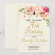 Celebre um aniversário especial com este belo convite de aniversário botânico rosa de aquarela que apresenta bordas florais em cada lado do texto elegantemente colocado. As cores incluem o rosa pálido pincelado, vermelho enterrado profundo e ameixa misturados com verde etéreo e minúsculas flores brancas de sotaque. Personalize o modelo de texto com suas informações. Você pode editar a idade para qualquer aniversário de idade.