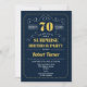 Surpresa 70 de Aniversário. Design de ouro amarelo e marinho retrô elegante. Saúde para 70 anos! Pode ser personalizado para mostrar qualquer idade.