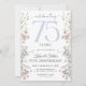 Celebre com estilo este convite de 75º aniversário, lindamente desenhado, com delicadas flores silvestres em aquarela. Perfeito para festas no jardim, brunch ou soirées sofisticadas, este convite personalizável define o tom para um evento memorável. Edite facilmente o texto para incluir seu nome, detalhes da festa e muito mais — torne-o único!