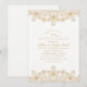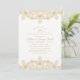 Convites de Aniversário de 75 anos de Casamento Renda Dourada Elegante. Personalizados com os detalhes da sua celebração. Apresentam efeito de renda dourada e tipografia em um fundo branco. Você pode facilmente alterar a cor do fundo se desejar. Este convite de aniversário de casamento foi projetado por superdazzle.com