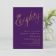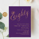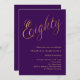 Um convite moderno e na moda para uma festa de aniversário 80. Um fundo de cor púrpura e a palavra Oitenta escrita com letras elegantes e grandes em dourado falso. Personalize e adicione um nome e detalhes da parte.