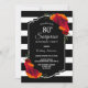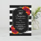 Convite de aniversário de 80 surpreendente, com faixa branca e preto, com elegantes monitores florais vermelhos e laranja. O texto é totalmente personalizável para permitir que você inclua todas as suas próprias informações para a celebração de aniversário.