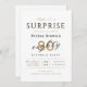 O convite para o aniversário de surpresa moderno apresenta a escrita de na moda e a tipografia com os detalhes da sua festa em ouro sofisticado, preto e branco, simples e elegante, Excelente para festa de aniversário 80 ou qualquer outra idade,