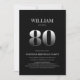 Convide seus amigos e entes queridos para uma festa surpresa de 80 com este convite de aniversário minimalista negro e prateado.