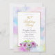 Um convite de aniversário 80 floral azul e cor-de-rosa com borda dourada e pintada de aquarelas.