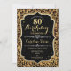 Convite de aniversário de 80. Design branco preto elegante com ouro brilhante. Apresenta a impressão e a letra de um animal de chita leopardo. Perfeito para uma bolsa mensageifesta de aniversario elegante. Pode ser personalizado em qualquer ano! Envie-me uma mensagem se precisar de mais personalização.