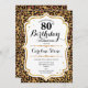 Convite de aniversário de 80. Design elegante em ouro branco e brilhante. Apresenta a impressão de animais leopardo cheetah, fonte de script e rosas. Perfeito para uma bolsa mensageifesta de aniversario elegante. Pode ser personalizado em qualquer ano! Envie-me uma mensagem se precisar de mais personalização.