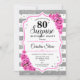 Convites Aniversário de 80 Surpresa - Prateado Branco-Rosa