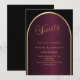 Um convite elegante de 90. Um fundo preto e arrojado com um arco de ouro na frente.