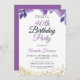 Apresentando flores roxas de aquarela e confete com brilho dourado, este design exude elegância e brilho, perfeito para celebrar um 90 de aniversário.