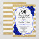 Convites Aniversário de 90 Surpresa - Azul Branco Dourado