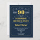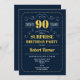 Surpresa 90 de Aniversário. Design de ouro amarelo e marinho retrô elegante. Saúde até 90 anos! pode ser personalizado para mostrar qualquer idade.
