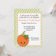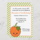 Abóbora de laranja bonita com um convite de aniversário de stripe verde e branco. Visite a loja SuperCuteKawaii para ver toda a linha de produtos correspondentes!