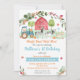 Este convite inclui animais de fazenda bonitos com abóboras, folhas de outono e verde.