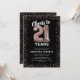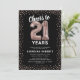 Convite de aniversário de vinte e um anos elegante com um fundo preto estiloso que pode ser alterado para qualquer cor, brilho rosa dourado cintilante, balões de hélio rosa dourado vinte e um, e um modelo de texto de celebração de aniversário de 21 anos moderno e fácil de personalizar.