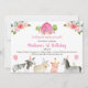 Este belo convite de aniversário apresenta animais de fazenda aquíferos com ornamentos florais cor-de-rosa.