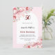 Um quadro de arco branco e fundo de rosa claro. Decorado com flores rosa e arcos cor-de-rosa. Personalize e adicione um nome, idade e detalhes.