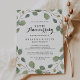 Este convite de aniversário de bodas de eucalipto é perfeito para uma celebração simples de aniversário de casamento. O design apresenta ramos e folhas de eucalipto verde botânico desenhados à mão".