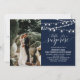 Celebre o seu dia especial com este convite personalizado de aniversário de casamento com foto. Este design apresenta uma bela tipografia "shhh... é uma surpresa" e luzes de corda em um fundo azul marinho. Você pode personalizar o texto para qualquer ano. Substitua a foto de amostra pela sua própria foto. Suprimentos para festa combinando disponíveis na minha loja BaraBomDesign.