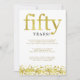 Este convite de festa de aniversário de cinquenta anos de casamento elegante diz "cinquenta" em texto de ouro falso e tem uma borda de confetes de ouro falso na parte inferior.