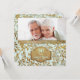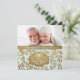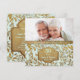 Lindo convite de aniversário de bodas de ouro sobre um fundo aqua menta pastel com uma sobreposição de folhas douradas elegantes. Faixa dourada correspondente na frente e verso do cartão. Faça o upload de uma foto especial para substituir o espaço reservado deste modelo de foto. Personalize o texto da frente e do verso do convite com as suas informações. Este design está disponível em outros itens da minha loja.