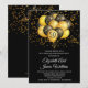 Um convite de aniversário de bodas de ouro 50º elegante e festivo com balões e confetes dourados e pretos e tipografia em branco contrastando com o tipo clássico sans serif. Este convite tem um estilo festivo com contraste ousado e moderno. personalize para qualquer aniversário de bodas.