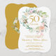 Com uma grinalda floral em aquarela elegante, este convite de aniversário de casamento de 50 anos pode ser personalizado com as informações do seu aniversário em tipografia dourada. O verso apresenta uma grinalda floral correspondente emoldurando as datas do aniversário em texto dourado elegante sobre um fundo dourado. Desenhado por Thisisnotme©
