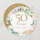 Com uma delicada guirlanda de rosas florais em aquarela e folhagens, este convite circular de aniversário de casamento de 50 anos botânico chic pode ser personalizado com as informações do seu aniversário especial no verso. Projetado por Thisisnotme©