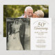 Personalize com a sua foto de casamento favorita na frente e os detalhes da sua celebração de aniversário de bodas de ouro nº 50 em tipografia dourada elegante. O verso apresenta uma segunda foto especial. Concebido por Thisisnotme©