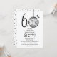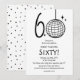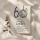 Faça 60 anos com estrondo com nossos convites de aniversário de 60 anos modernos e elegantes. Nosso design apresenta uma bola de discoteca desenhada à mão única formando o '0' no número 60, estrelas retrô espalhadas e um modelo de festa casual em uma fonte manuscrita emocionante, tudo em um fundo branco atemporal. Este convite especial mescla diversão e elegância, um verdadeiro reflexo do que é fazer 60 anos.