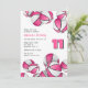 Este convite de festas temático de basquete giro para um aniversário ou uma festa do time apresenta clusters de basquete rosa e branco nas bordas superior e inferior do cluster de solteiros que cobre a parte de trás do convite - personalize os detalhes da festa em um fundo branco - por katz_d_zynes