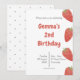 Convite de aniversário temático de morango. Letras brilhantes com morangos. Detalhe doce de bolinhas no verso. Vermelho e rosa. Perfeito para aniversário de bebê ou criança de dois anos, 2º aniversário, primeiro aniversário de 1 ano, chá de bebê, gestante, chá de panela, chá de cozinha, festa de 30º aniversário. Edite facilmente o texto moderno e divertido. Combina com tema de festa Tutti Frutti / Twotii Fruity ou tema Berry Sweet. Encontre acessórios correspondentes na loja Gemma Harlow Creations ou transfira o design para seus produtos favoritos.