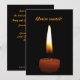 Envie este convite elegante para um evento muito especial, ou apenas uma festa divertida. Ele apresenta uma fotografia simples de uma vela marrom com uma chama encantadora em tons de branco, amarelo, dourado e laranja. Está configurado em um fundo preto puro. Outra vela está na parte de trás junto com todas as informações importantes. O texto é formulado para um aniversário de casamento, mas pode ser facilmente alterado para se adequar à sua celebração única.